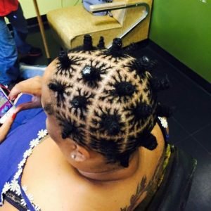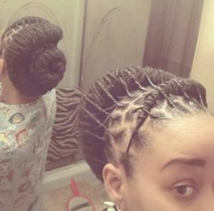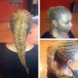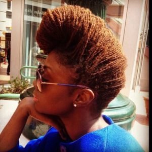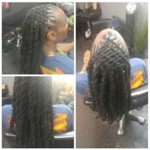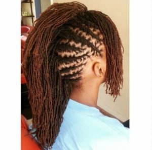 Sisterlocks are braided on each side to form a mohawk, this style can have any style of braid designs on the sides as well.