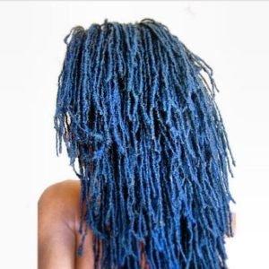 The blue hair gives these sisterlocks more dimension with the different shades of blue and black in the hair.