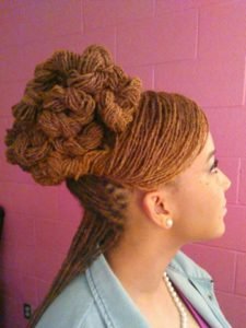 This sisterlocks up-do is of medium length Sisterlocks twisted rolled and styled in an up-do and is honestly beautiful and will have everyone asking how?!