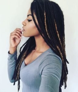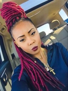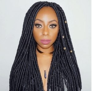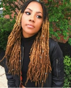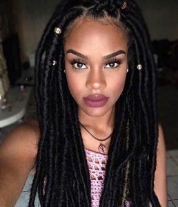 Like Marley locs, Yarn is another material for faux locs. We wish we could have locs like the woman in the picture. Who wouldn’t want a pretty half up bun with beautiful beads near the roots of your hair.