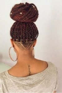Change up your casual bun by adding some bold elements. The dark red hair color makes the hair stand out. While the two front beads and the crochet braids gives the bun an unique look that we all wish our buns imitated.