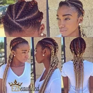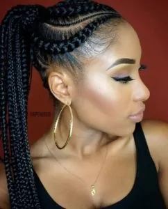 A distinct asymmetrical look is created when your Ghana braids are crafted in a unique design. Beautiful hairstyles can be created with Ghana braids to match your personality. Your wonderful sense of style will shine throughout the day.
