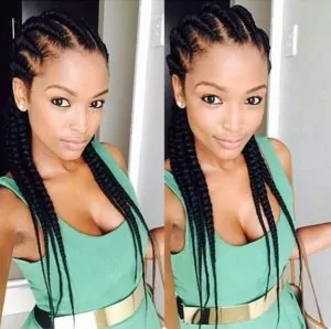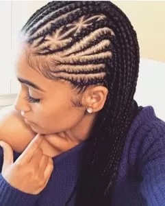 A fascinating hairstyle is the criss cross Ghana braids. Intricate symmetry is created with two braids. An original style, these Ghana braids showcase your confidence.