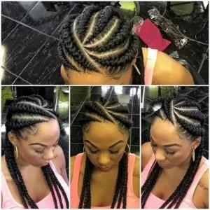 Your tresses can be a work of art as you don this unique hairstyle with an ultra-cool 3D effect. The contrast of the thin and thick braids pairs well with this distinct hairdo. Originality at its best.