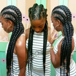 Pay homage to African culture by donning a distinct zig-zag part throughout your Ghana braids. Gorgeous braids are crafted and the zig-zag part incorporates a reverent design.