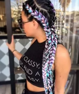 A color that never goes out of style is purple. Various shades of this gorgeous color can be added to your Ghana braids. Create elegant up-dos or let your braids flow freely.