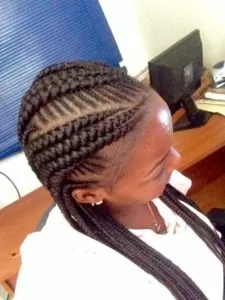 For a unique hairstyle, don an edgy Ghana Mohawk. The sides of your hair can be braided into thin or thick designs. At the top of your head, style your tresses into a Mohawk to match your distinct style.