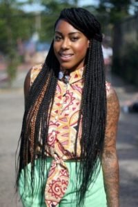 Embrace the length of your tresses, and don chic micro braids. Add a knitted cap or a fedora to complete your style. Hats are a wonderful accessory to add to your micro braids.