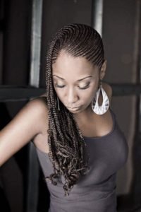 A polished look is crafted with a unique blend of cornrows and micro braids. The design of these braids is carefully crafted to create a sophisticated style. Emphasize your beautiful facial features with this hairdo.