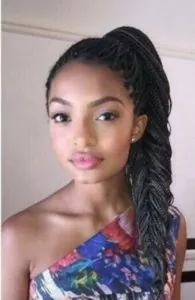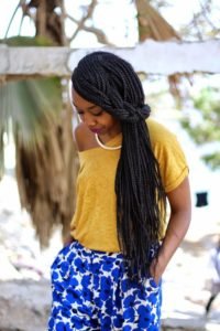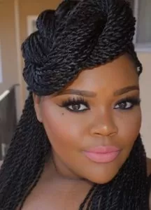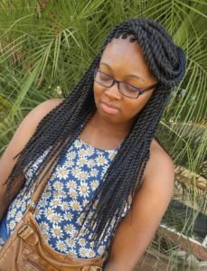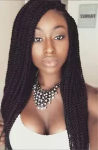 Small Senegalese twist hairstyles are low maintenance and can be crafted into several ‘dos. Leave your micro twists down for a beautiful style. Pair this hairdo with work attire or with your favorite maxi dress.