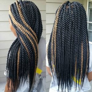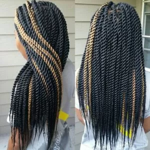 An ultra-chic look is created when you don two-tone Senegalese twists. Add a few highlights to create a unique look. Blonde, brown, or other colors can be paired with black tresses for a cool effect.