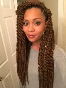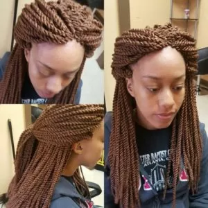 A softer shade of color is emphasized with caramel Senegalese twists. Caramel is warm hue to add to your tresses. Natural colors can be combined with Senegalese twists for a cool effect.