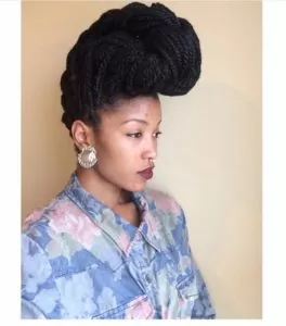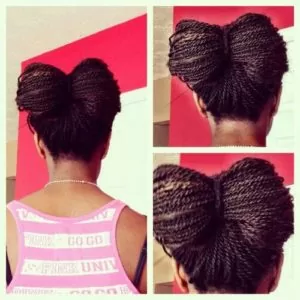 A voluminous up-do is created when you style your Senegalese twists in a forward moving bun. Your tresses are crafted into a forward bun which is a modern look. The height of this ‘do is a bold style.