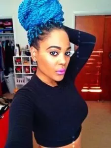 A gorgeous shade of blue can be emphasized with Senegalese twists. Blue is a cool hue to don while you craft various hairstyles. A high bun with blue Senegalese twists is an ultra-chic look.