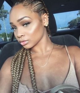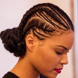 Style your African braids into an ultra-chic low bun. Cornrows and braids are designed atop your head for an intricate pattern. A low bun is crafted to add elegance and sophistication to this ‘do. Wear this hairdo for a day at the office or to a classy cocktail party.