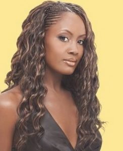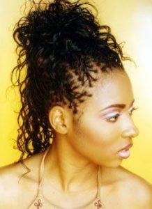For women with thick tresses, add long, curly tree braids for an elegant style. As the curls glide down your shoulders, sophistication and grace exude as you accomplish your goals for the day. Business or formal attire pairs well with this look.