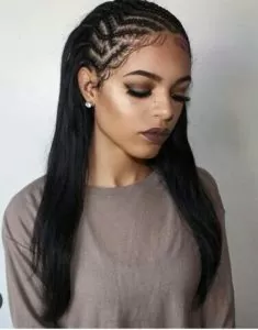 A Mohawk combined with tree braids creates a unique, edgy style. Braids are designed on the sides of your head while a Mohawk stands on top. A bold look is skillfully crafted with your tresses. Let your uniqueness shine through your hairdo.