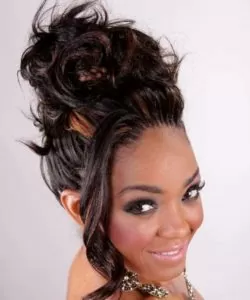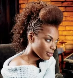 An ultra-chic up-do is crafted with lovely curls while accentuating your neckline. A Mohawk inspired up-do has braids in neat rows across the back of your head. Curls cascade down your forehead for a sophisticated look.