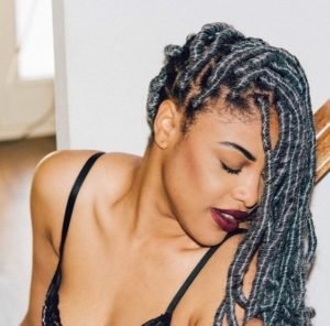A deep side part creates a sophisticated look when paired with yarn dreads. New half up-dos can be created with a side part. Style a hairdo that matches your simple, yet elegant sense of fashion.