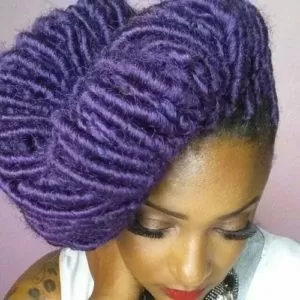 A classy way to don yarn dreads is to pin curl your tresses atop your head. Style pin curled yarn dreads for a sophisticated look. Wear your dreads to fancy events or posh dinner parties.