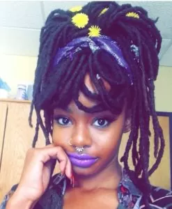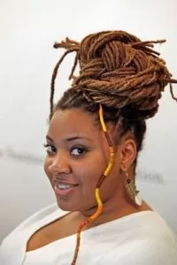 Yarn dreads crafted into an ultra-chic up-do are perfect for accessories. Style flowers throughout yarn dreads for a unique ‘do. Let your wonderful sense of fashion shine.