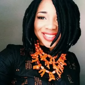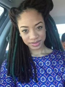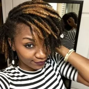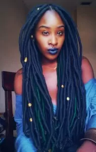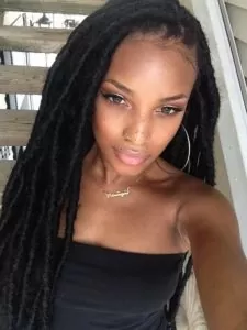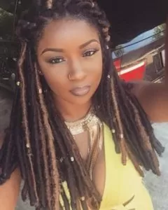 Adding various colors to your yarn dreads creates a beautiful head of hair. A three-tone color combination of blonde, brown, and black is a sophisticated look. Wear your dreads long and paired with a gorgeous dress.