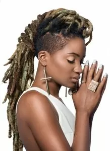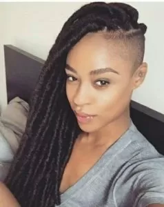 For an edgy look, combine yarn dreads with a shaved side. Add a unique design throughout the shaved side for a bold fashion. You can wear your dreads on one side of your head or design a beautiful up-do.