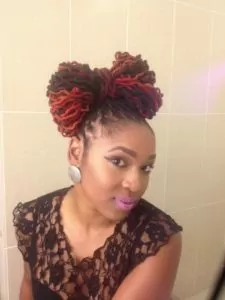 Style yarn dreads into a cute bow that sits atop your head. Pair this classy up-do with beautiful dresses for all the fancy cocktail parties you attend.