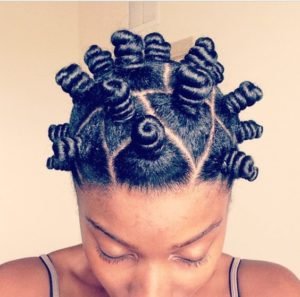 One of the coolest attributes of bantu knots is the designed parts you can create. Diamond parts are shaped throughout the sections of bantu knots for a hip style.