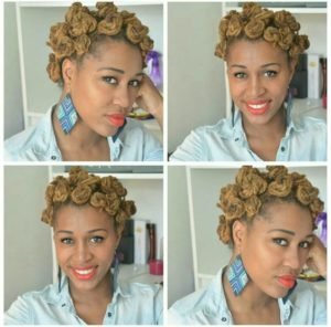 For an inspiring look, don blonde bantu knots. A beautiful golden hue is added to your tresses. Pair this ‘do with gorgeous attire to achieve a classy style.