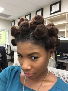 The simplicity of these bantu knots allows you to wear this ‘do when you go to the gym for a workout. Bantu knots are a great style to wear as you stay fit and healthy.