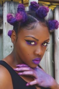 Be a part of the latest fashion trend by adding a brilliant shade of purple to your tresses. Purple has recently become popular, and adding this hue to your bantu knots creates a fierce look.