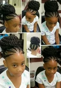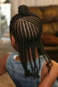 Ghana braids are a great choice for both kids and adults. These Ghana braids are styled into a simple but chic high bun that style manages to maintain a youthful look.