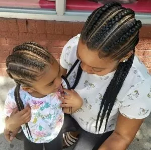 Like mother like daughter. Get matching hairstyles with your little princess. We love these straight back cornrows that alternate in size. These are not only easy to maintain but also easy to do as well.