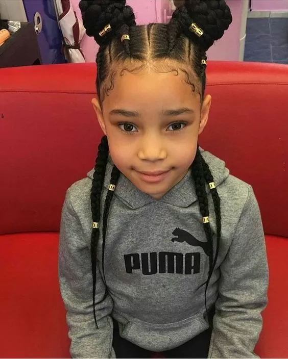 Home 60 Braids for Kids: 60 Braid Styles for Girls Cornrows With Gold Beads And Double Buns