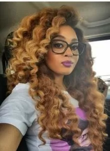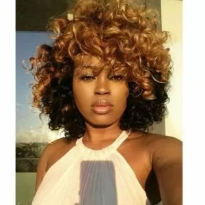 Black hair with blonde highlights is such a striking look. No matter how many times you see it, somehow it just never seems to get old. This bouncy curly crochet style with blonde ombre highlights is a great choice if you want to add a little pop of color to your next style.
