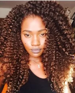 This is a simple go-to style. This kinky curly style closely resembles coily hair. If you have naturally tight curls and you want a style that looks like your natural hair texture then this is a great choice for you.