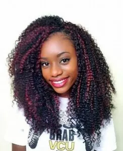 Add some spice to your life and go with a deep red hair color. Experimenting with color using crochet braids is great because the results are not permanent and you don’t have to worry about color damage.