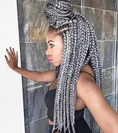 If you want a fun, bold protective style, try these grey chunky box braids. Grey has been a popular color lately and there are no signs that the trend will die anytime soon. Pre-braided crochet box braids can significantly cut down the installation time.