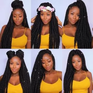Buns are the quickest and easiest styles to achieve. To achieve the sleek curly look with crochet braids, keep your braid pattern small and use the knotless crochet method.