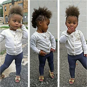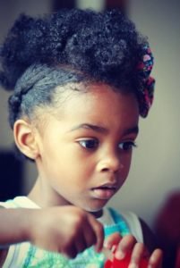 Sometimes you just want to let your little girl rock her hair in all of its natural glory. You can use a hair pick or your fingers to help style her natural afro. Make sure the hair is properly moisturized so it doesn’t dry out and break. This style can be prone to tangles, but as long as you maintain it with care, it’s a great way to show off your little girl’s beautiful natural texture.