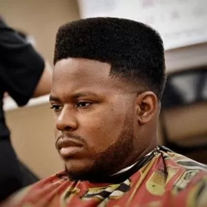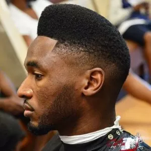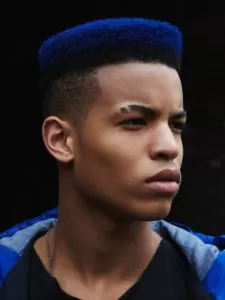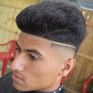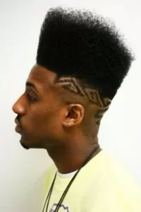 Having a high flat top fade is trending these days. Create a cool look when your hair is faded on the top and has rounder shape. Adding a pop of vibrant color makes this style unique. Sculpted lines and edges complete this cut.
