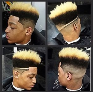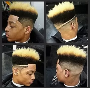 Highlight your high top fade with blonde patches for a bold look. Blonde has been in this season, but you can choose vibrant colors such as purple or pink for your hair. For a daring look, go for the multi-color patchwork.