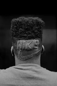 Display your passion for sports with a design of your favorite sportswear etched into the back of your head just below your high top. Make your haircut all your own and craft a unique design to showcase your interests.
