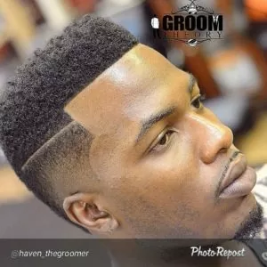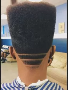 A super high top fade paired with a gradient triangle cut at the nape is a fine example of retro 90’s style. Clean horizontal lines are a simple design with cool vibes.