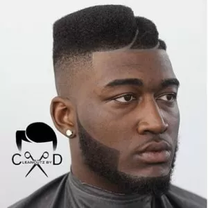 A pompadour look can be crafted through a retro high top fade that is lower towards the back. Shape is the centerpiece of this cut that is perfect for dapper gentlemen.