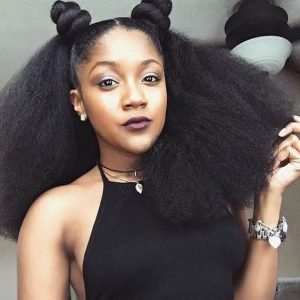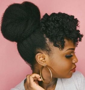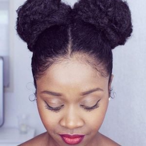 Easy, quick and playful this style just involves securing two bantu knots at the front of your hair with pins or hair ties and fluffing out the rest of your hair. This style works great on both long and short hair.