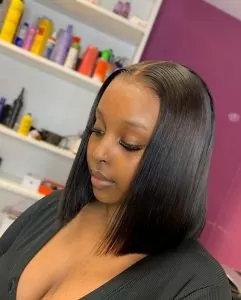 For this timeless style, you only need to leave out a section of hair at the middle of your head and along your hairline. If your hair is already much shorter than the length of your weave, then you only need to straighten it forward into this wispy bang.