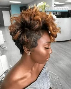 This sew-in won’t require much hair, and you can keep your bundles at lenghts of six inches or less. Adding this height and colour can really take any boy-ish elements out of your pixie cut.
