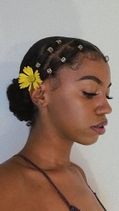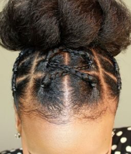 This style is a beautiful alternative to your usual flat twists. Rubber bands are used to cornrow hair at the front and then everything is gelled down into a low bun.